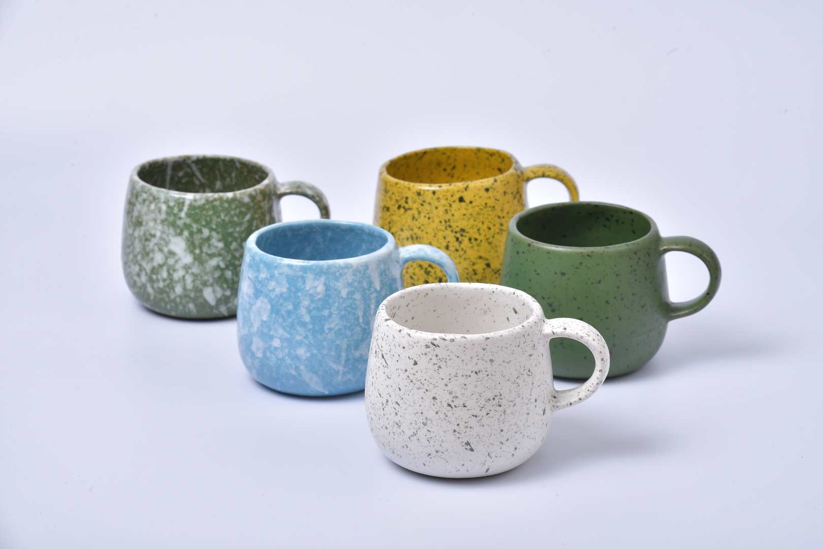 Mug available in 5 colors, made from high-temperature fired ceramic. It can retain heat or cold for a long time and is durable, with a capacity of 350-360 ml or 12 OZ. It is microwave-safe and dishwasher-safe.